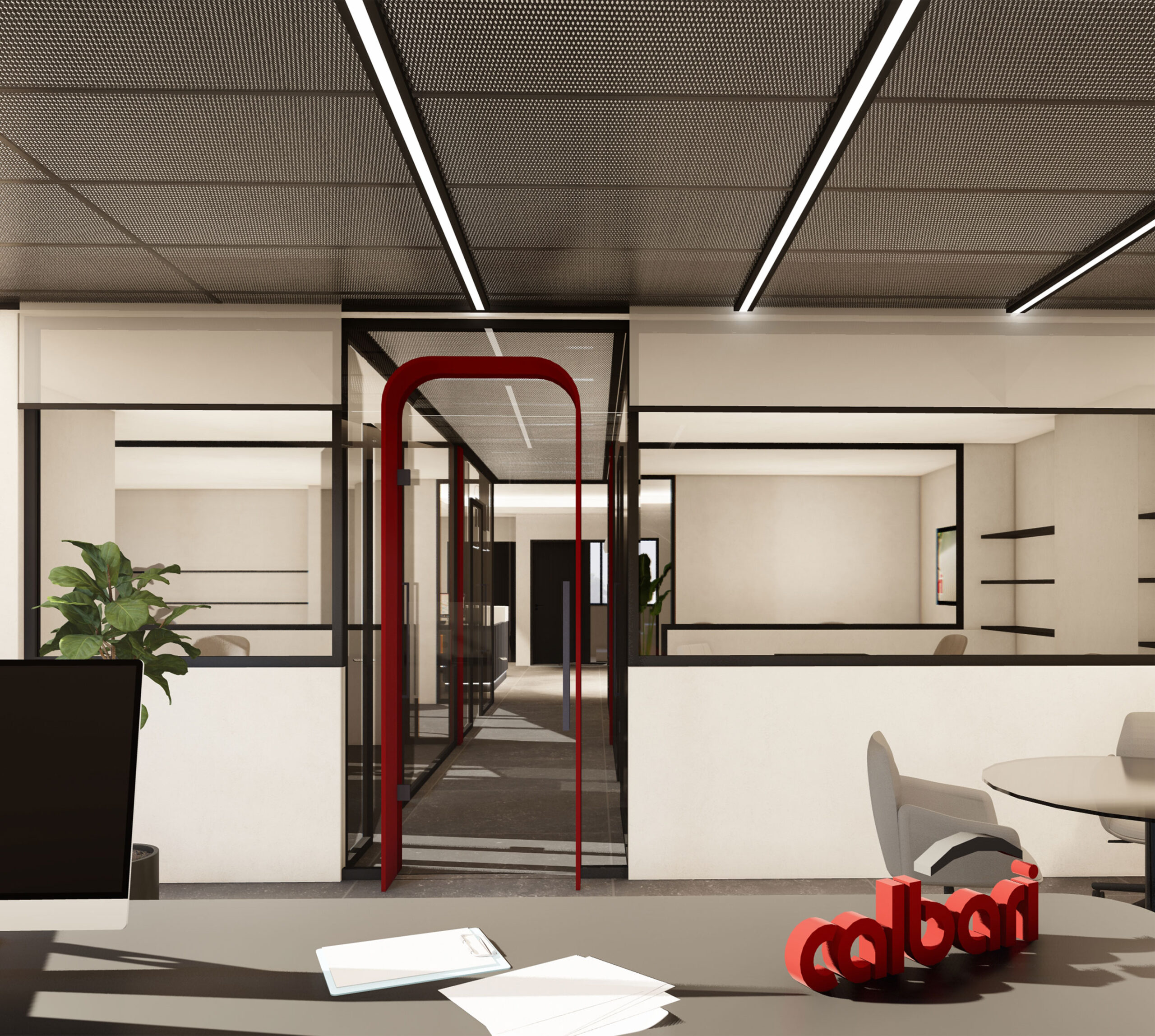 Πρόκειται για ένα υπάρχον βιομηχανικό κτίριο στη ΒΙ.ΠΕ. Κορωπίου. Στόχος του έργου ήταν να επαναπροσδιορίσει την ταυτότητα της υπάρχουσας μονάδας μέσα από μια σύνθεση που ισορροπεί ανάμεσα στη στιβαρότητα και τη δυναμική έκφραση. Το μέταλλο κυριαρχεί ως βασικό υλικό, αποδίδοντας μια αίσθηση ακαμψίας και αντοχής, ενώ οι μεγάλες επιφάνειες καθρέφτη διαχέουν το φως και αντανακλούν το περιβάλλον, δημιουργώντας ένα διαρκώς μεταβαλλόμενο παιχνίδι. Τα έντονα κόκκινα στοιχεία, εμπνευσμένα από το εταιρικό λογότυπο, διατρέχουν την όψη, εισάγοντας μια χρωματική ένταση που σπάει τη μονοχρωμία των μεταλλικών επιφανειών και αναδεικνύει την ταυτότητα του κτιρίου. Η είσοδος τονίζεται από ένα χαρακτηριστικό κόκκινο στέγαστρο, το οποίο λειτουργεί ως σημείο αναφοράς και προσδίδει μια γλυπτική διάσταση στο κτιριακό σύνολο. Στο εσωτερικό, η βιομηχανική αισθητική συνεχίζεται με εμφανή δομικά στοιχεία, μεταλλικά πλαίσια και επιφάνειες μεγάλης κλίμακας, αλλά η ατμόσφαιρα αποκτά μια πιο θερμή διάσταση μέσα από στοχευμένες υλικότητες και φωτιστικές παρεμβάσεις. Η ισορροπία μεταξύ ψυχρού βιομηχανικού χαρακτήρα και ζεστής λειτουργικότητας δημιουργεί ένα περιβάλλον που αποπνέει τόσο τη δύναμη της τεχνολογίας όσο και την ανθρωποκεντρική διάσταση του σχεδιασμού.