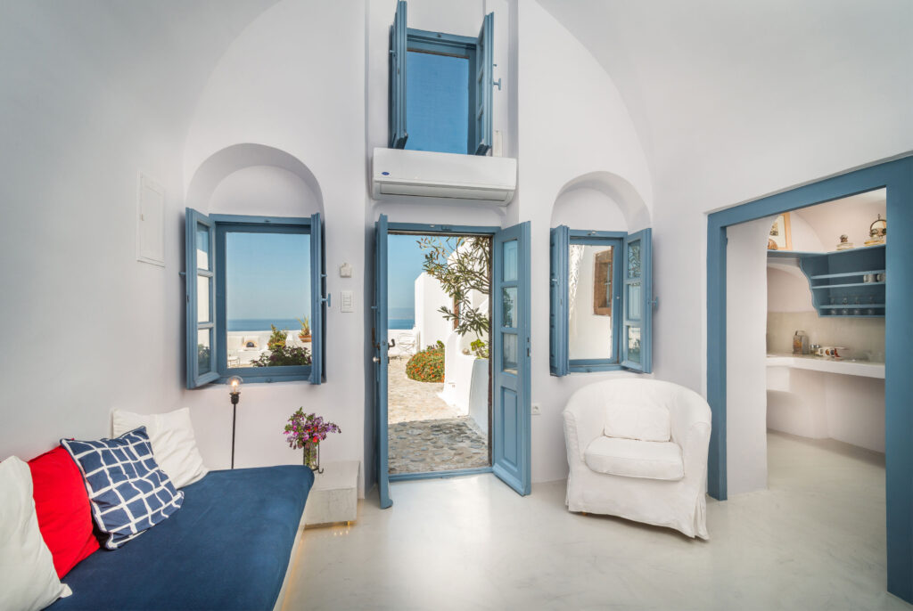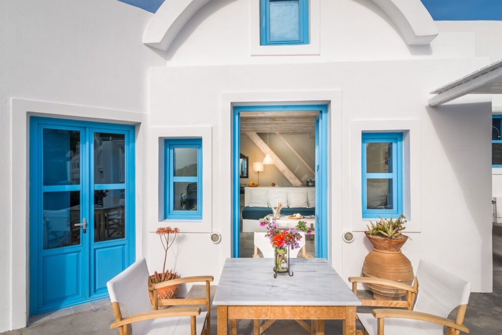 This hotel in Finikia Santorini is a complex of 12 houses of listed buildings with original construction date back to the end of the 19th century. During the reconstruction, methods following bioclimatic architecture and ecological materials were used. All buildings have views of the famous sunset of the island and the Aegean Sea. The design and reconstruction aimed at respecting the tradition and architecture of the era as well as its completely harmonious integration into the environment and the landscape of the settlement of Finikia. It has a simple and unpretentious interior layout and decoration framed by handmade built-in furniture and hidden lighting that give a sense of intimacy, warmth and nostalgia of another era, without lacking luxury and technological comfort. A refuge for visitors who know how to recognize the aesthetic experience of space by experiencing a heterotopia.