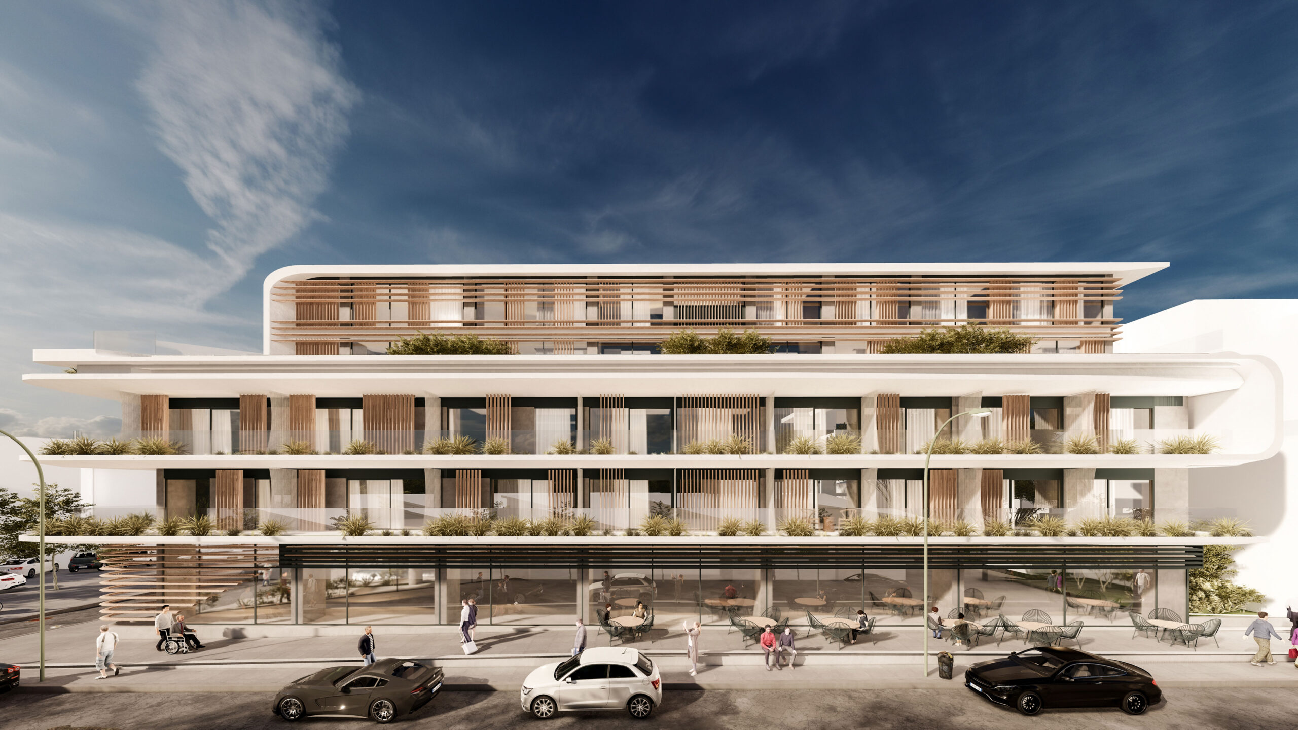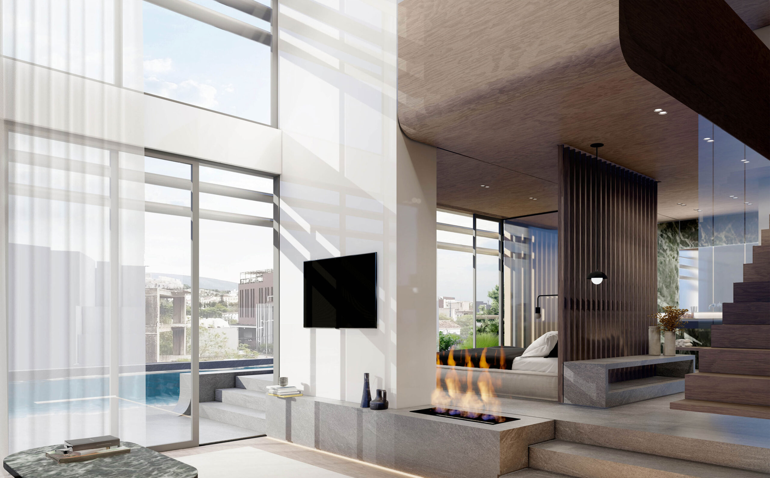 The aim of each building is its nodal existence, its identity within the urban fabric as a unique work that will force the visitor to stop and look at it. The building on Iera Odos functions as an anti-node, embodying the concept of movement, connection and continuous flow, the aim is to move rather than stop. It is designed to be an active gathering and assembly space. The building, having the notion of ephemerality, develops around a strong curved geometry that alludes to paths and routes. In this way it creates a sense of perpetual movement, predisposing the passer-by to enter and leave. The ground floor has a public character as it houses the shops and catering facilities. The upper levels have a private character which is achieved by the moving blinds.