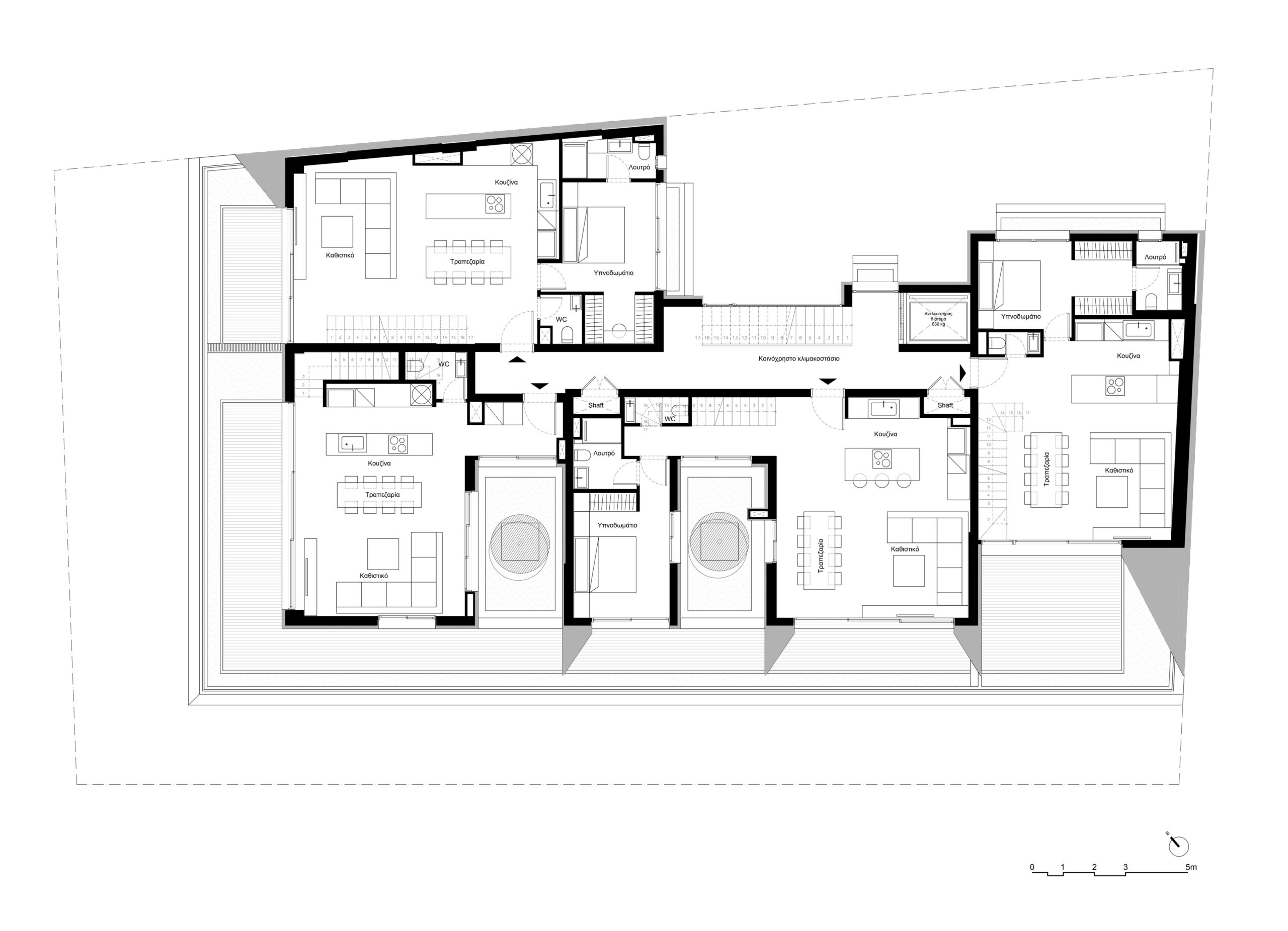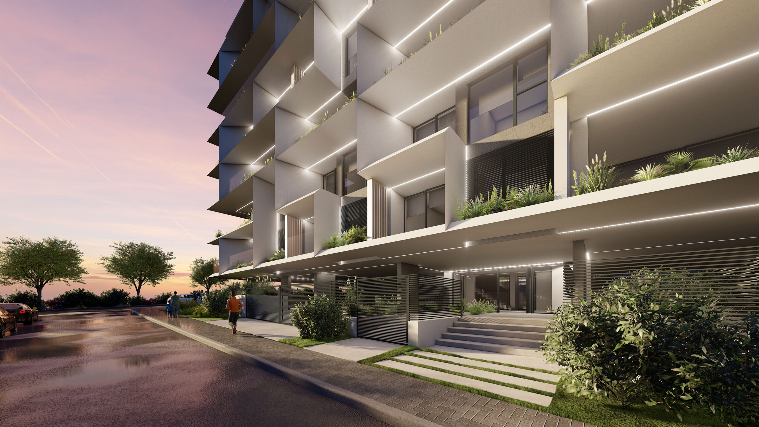 The balconies, positioned with precision and harmonious balance in the elevation, offer spaces of contact with the natural environment, while at the same time incorporating natural elements within the urban fabric, creating a dynamic contrast with the severity of the white surface. It is a reference to nature in the city, offering life and well-being in a strictly technocratic world. Each unit consists of customized apartments that are integrated with each other, in order to maximize spatial usability and visual continuity between the individual spaces.