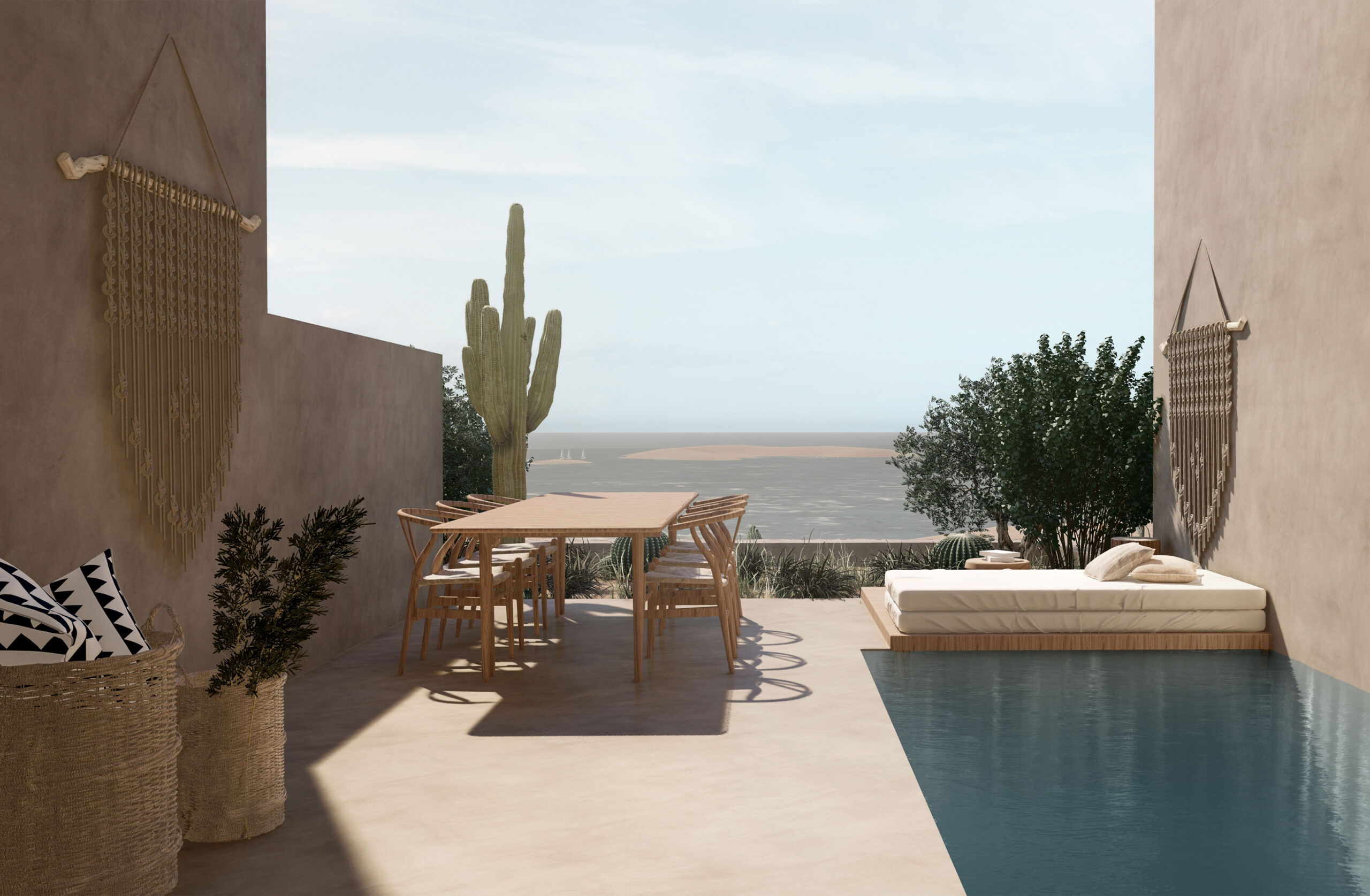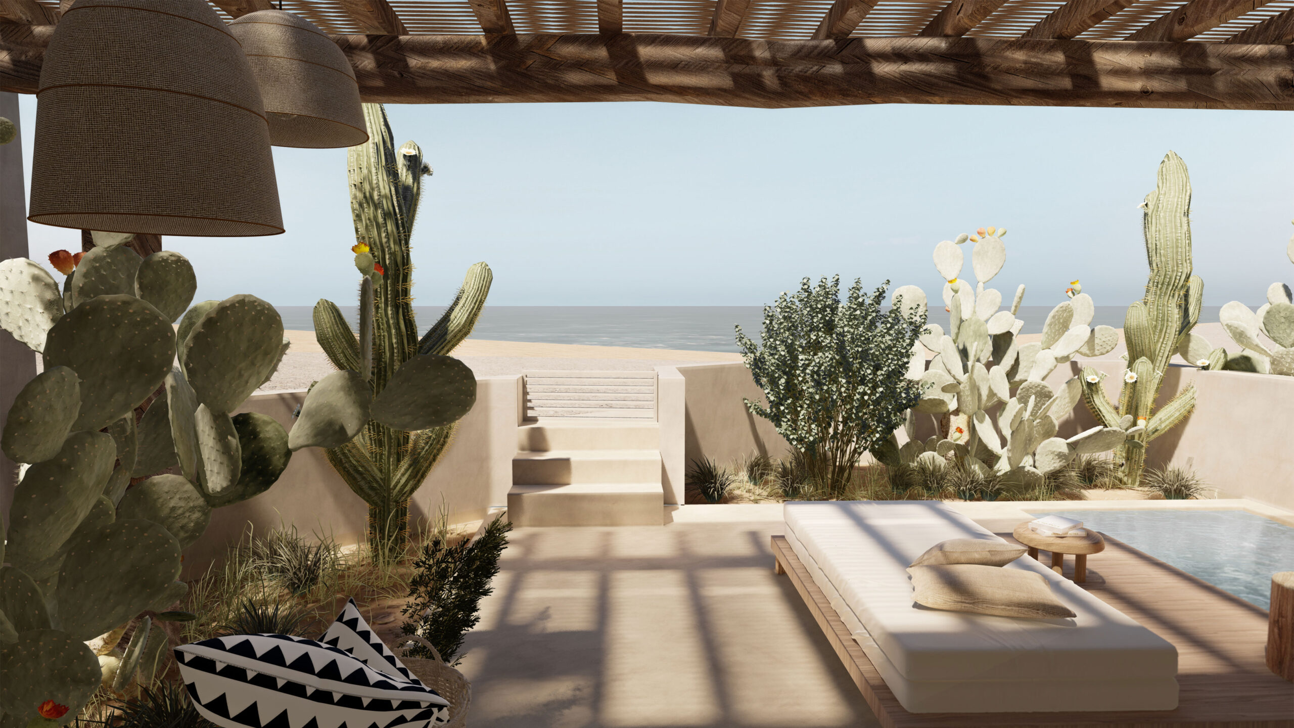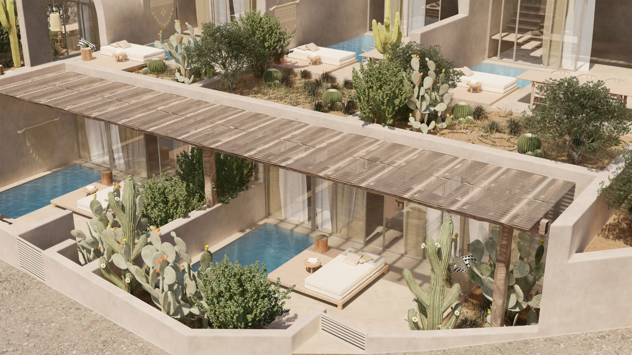 Inspired by the genuine Cycladic tradition and the timeless connection of the donkey with the history of Santorini, the hotel “Onos” (original Greek: donkey) is harmoniously integrated into the landscape of Monolithos, adopting a gentle, almost primitive architectural expression. The materiality of the space is drawn from the local land, with earthy tones smeared on the walls to reflect the volcanic relief and natural tones of the island, while the domes and curved surfaces bring back the sense of traditional construction, creating spaces that breathe through light and shadow. The composition of the volumes is shaped by a simple, almost primitive geometry, where the monumentality of the building remains subliminal, expressed through the plasticity of the forms and the synergy with the landscape. Natural materials, such as volcanic stone and wood, intertwine with the smooth surfaces of the plaster, creating an architecture that does not compete with nature, but enhances it with delicacy and respect.At Onos, the experience of hospitality is inextricably linked to the built environment, where the flow of spaces and the quality of light create a sense of absolute tranquility. Its architecture does not seek to impose, but to assimilate into the landscape, offering guests an experience of the land and light of Santorini.