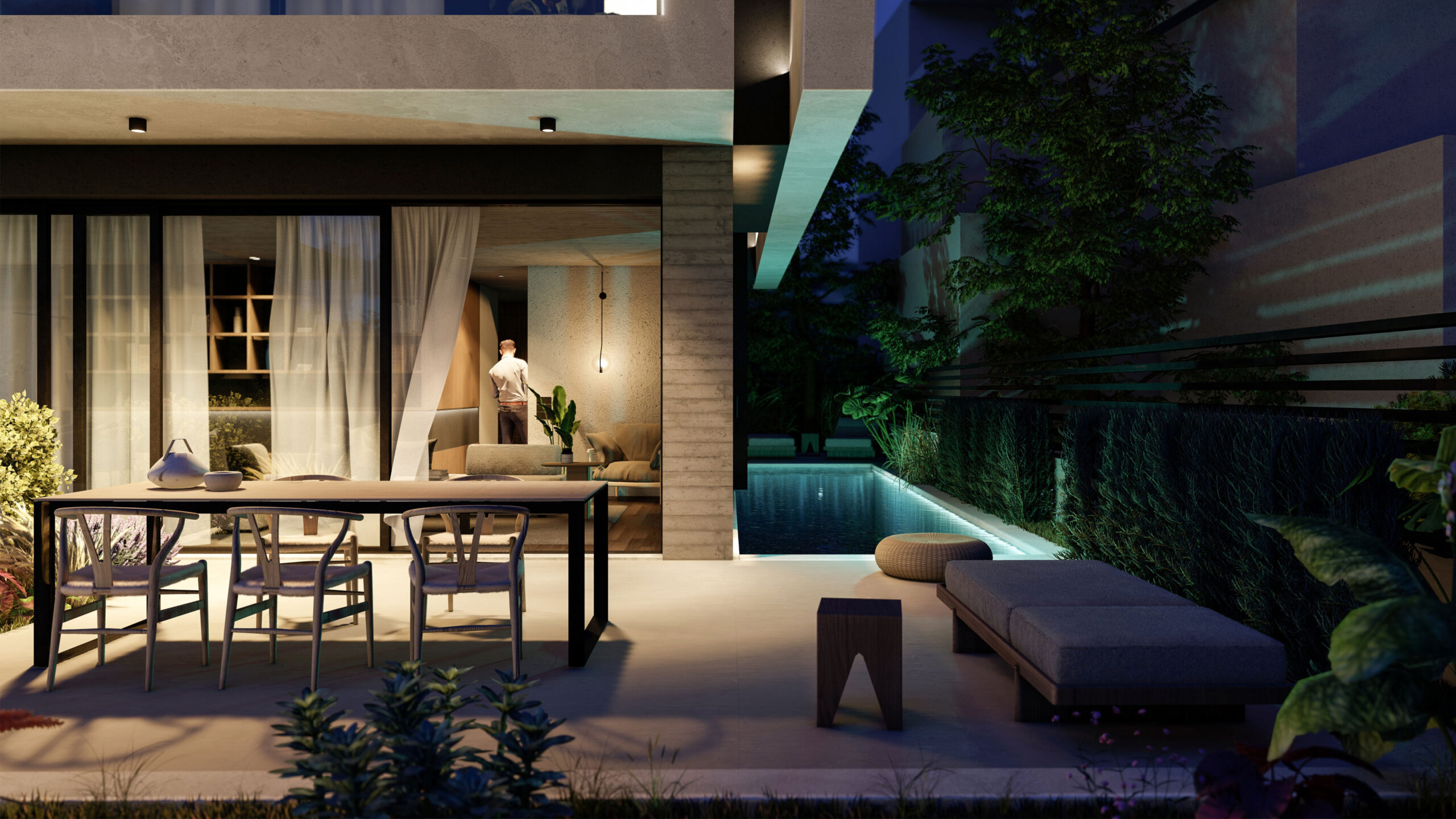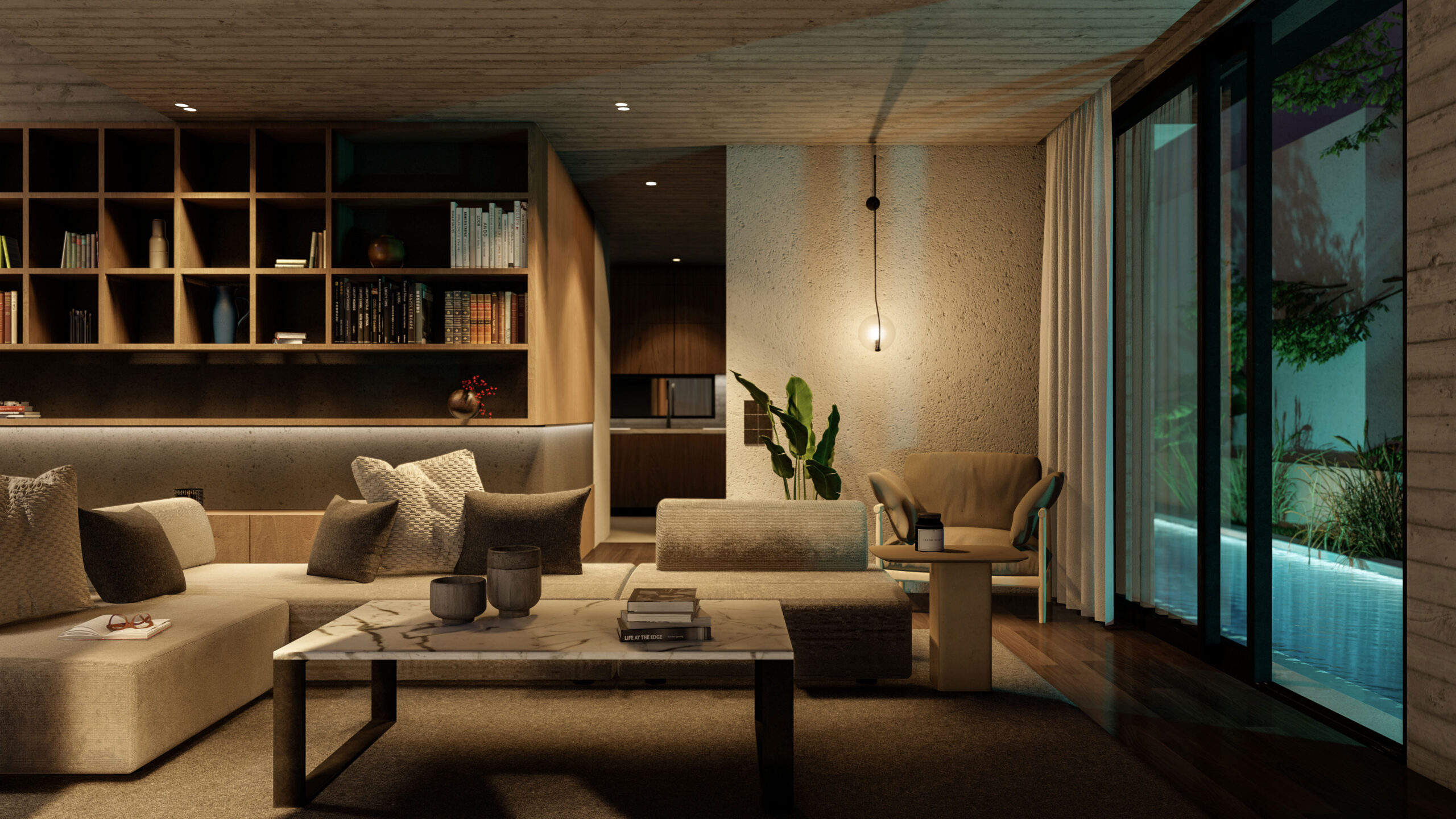 The concept of shelter is also conveyed in the interior space, exuding a mystique with atmospheric lighting and textures. Materials such as stone, wood and concrete mimic the architecture of vaulted tombs. The building aims to bring together ancient Greek monumentality with modern urban life and the contradictions of human life. Seeking to synthesize a bipolar simulation of dark majesty and luminous rebirth through the architectural act.