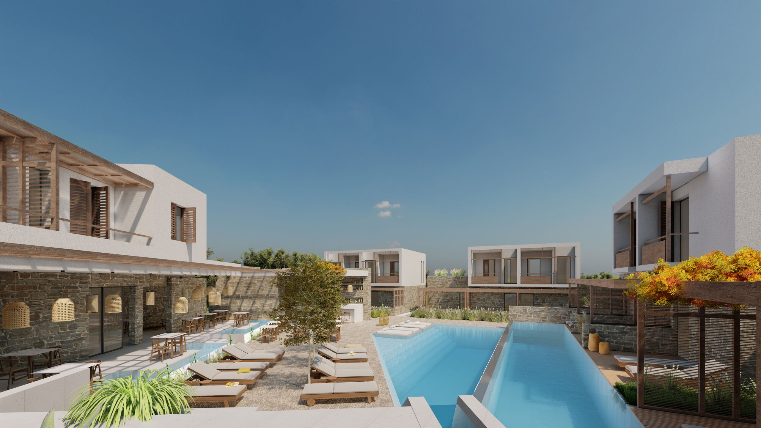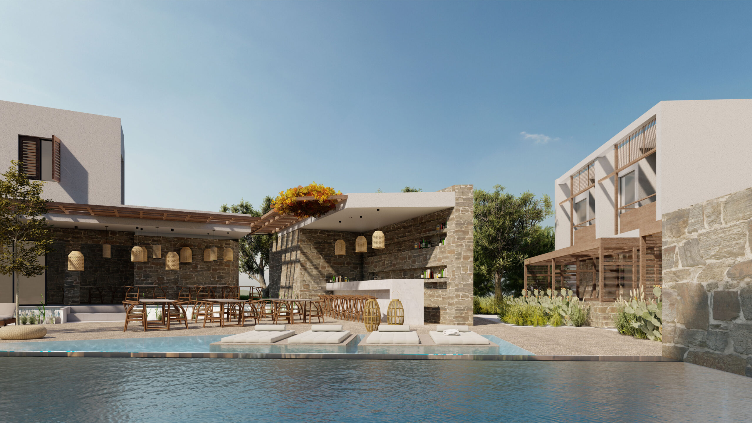 Η σύνθεση του παλιού και του μοντέρνου, της πέτρας και του ξύλου, της κίνησης του νερού και της σταθερότητας της γης, συνθέτει έναν χώρο που εμπνέει τους επισκέπτες να επανασυνδεθούν με τη φύση, να βρουν τη γαλήνη και την ανανέωση, ενώ ταυτόχρονα απολαμβάνουν τις σύγχρονες ανέσεις ενός πολυτελούς καταλύματος. Η κεντρική πισίνα με το εστιατόριο, αποτελεί τον πυρήνα των καθημερινών ανθρώπινων λειτουργιών.