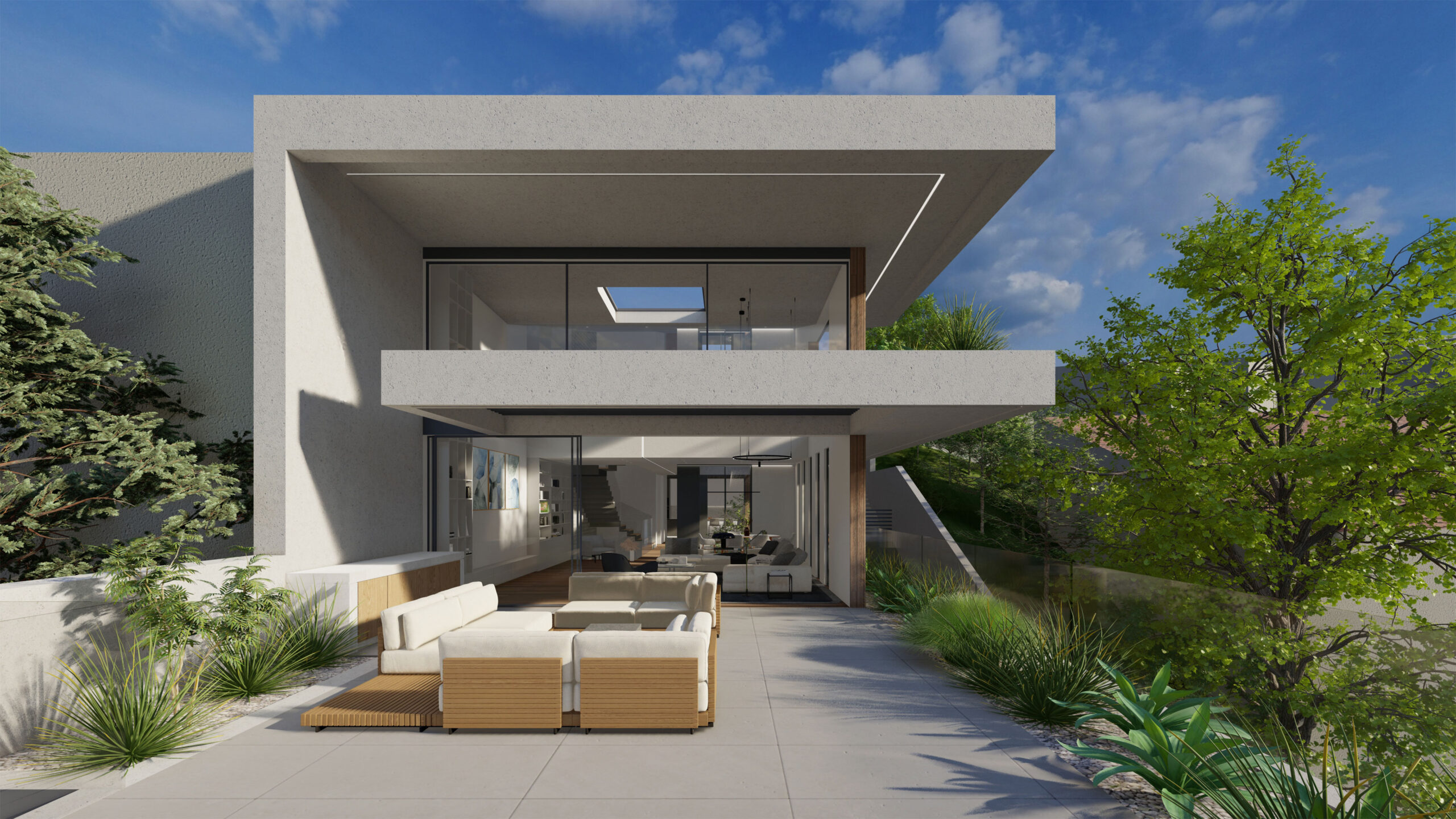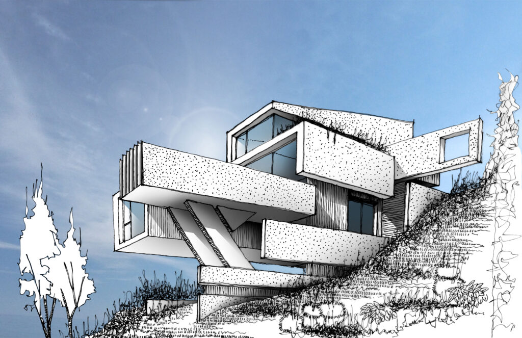 Σε οικόπεδο στo Πανόραμα της Βούλας με έντονη κλίση, δημιουργείται μια σύγχρονη κατοικίας που ανταποκρίνεται στις σύγχρονες τεχνολογίες υλικών και ενέργειας, αποτελώντας ένα κτήριο τοπόσημο για την περιοχή. Το ίδιο το οικόπεδο και η τοπογραφία υπαγορεύει τα 4 διαφορετικά επίπεδα σαν να αναδύονται από το βράχο. Οι μεγάλοι εξώστες και οι υπαίθριοι χώροι εκμεταλλεύονται την πανοραμική θέα προς τη θάλασσα