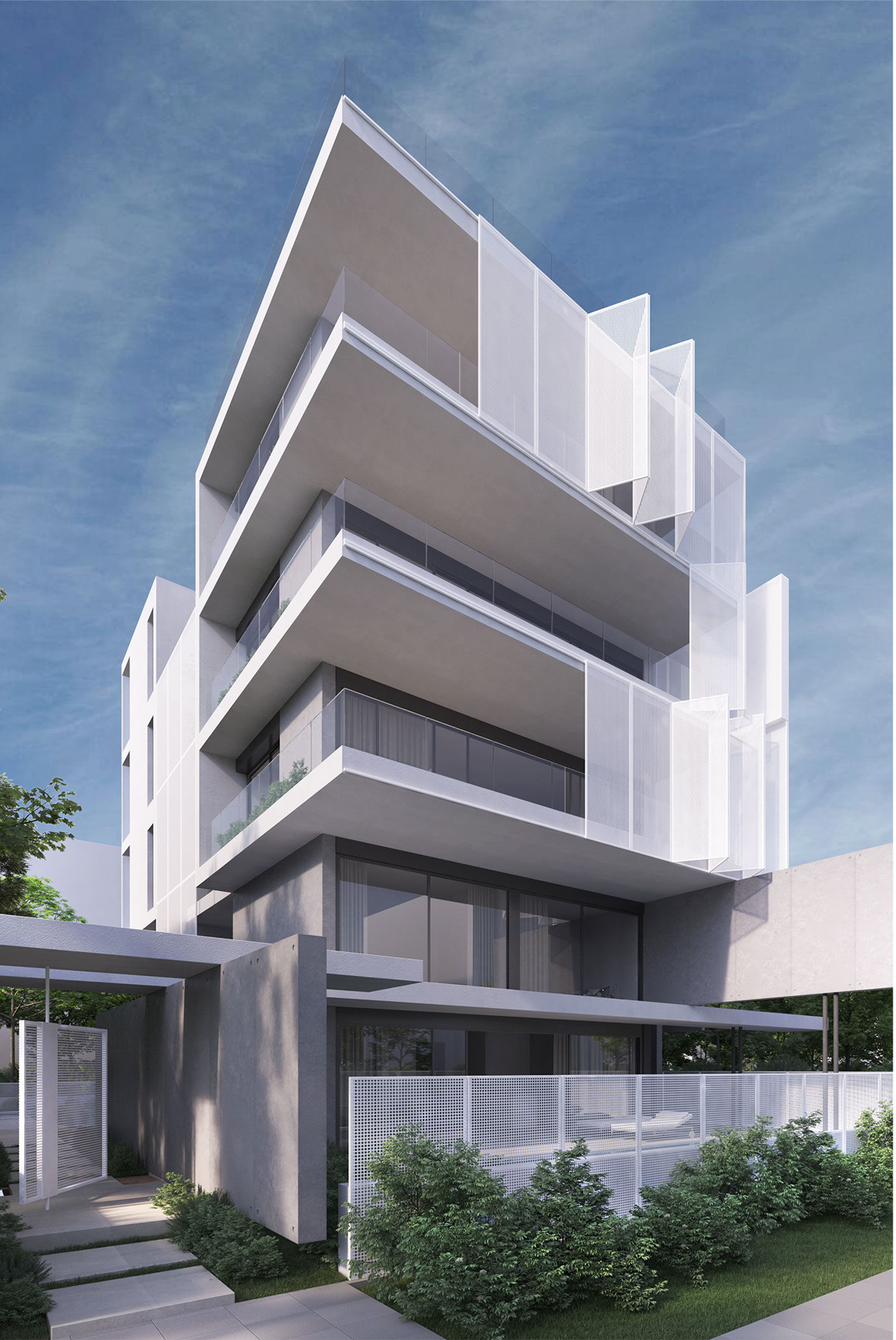 Η πολυκατοικία “The Pure” αναδύεται ως μια ακατέργαστη ύλη, ακέραια και ανέγγιχτη. Η φιλοσοφία της ηθικής απλότητας εκφράζεται μέσα από μια λιτή και άσπιλη αισθητική που καθορίζει κάθε γραμμή και μορφή του κτιρίου. Με τη λευκή επιφάνεια του, το κτίριο διατηρεί την αίσθηση της αμεσότητας και της ανείπωτης αγνότητας που προέρχεται από την αδιάσπαστη σχέση του με τον χώρο και το φως.
