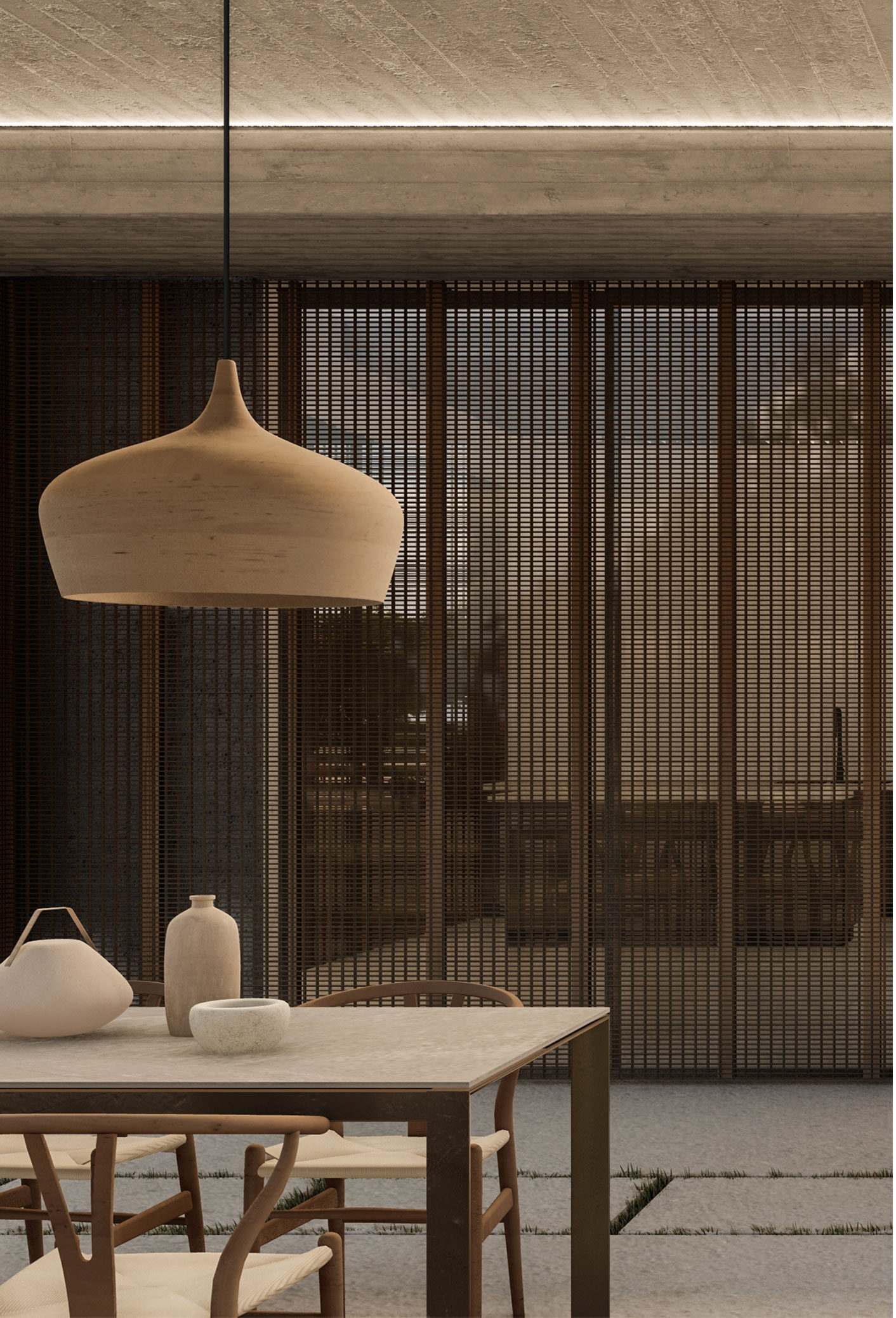 This design avoids excesses and emphasizes the purity of lines and the functionality of the spaces. Concrete, textured metal and perforated elements work together harmoniously to create a modern, innovative structure.