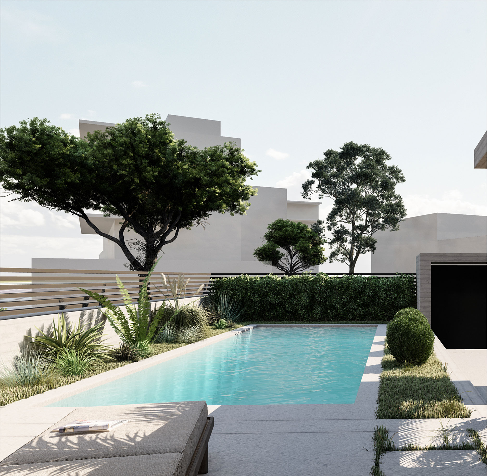 This detached house incorporates a highly refined design, where contemporary materials are combined with an aesthetic abstract model that brings in full harmony the physical and structural dimension of the space. The architecture of the construction is based on an extremely light and discreet use of elements, with the exterior surfaces revealing the authenticity of the concrete, which remains exposed and raw, giving it an industrial character while maintaining a sense of naturalness and durability.